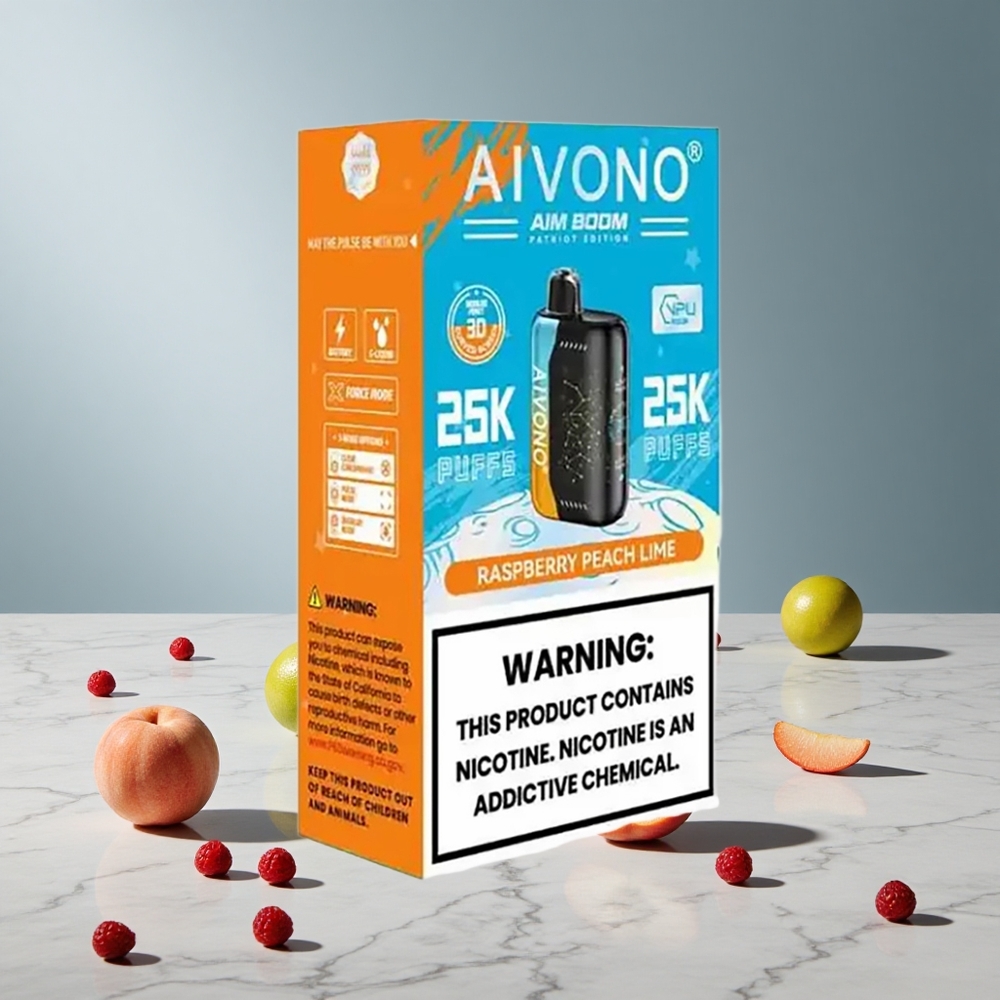 Aivono AIM BOOM 25000 Puffs Nikotinstyrke 0%,2%,3%,5% Hindbær Fersken Lime