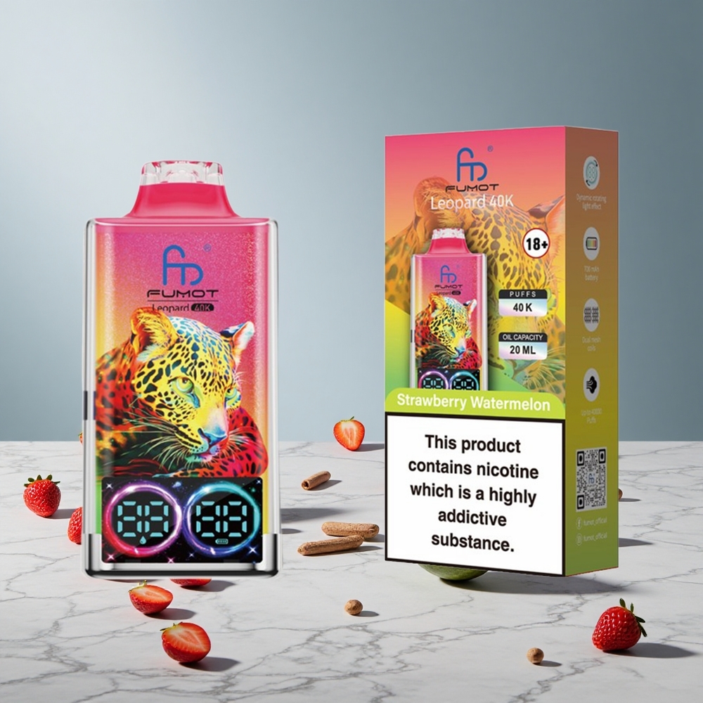 Fumot Leopard 40K Puffs Engangs Vape Jordbær Vandmelon med 700mAh Batteri og Type-C Opladning