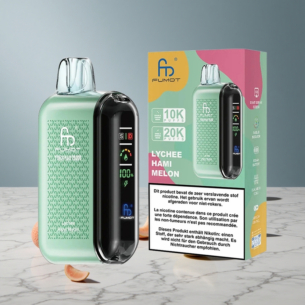 Fumot Tornado 20000 Puffs Smidigvisker med Dual Mesh Coil og Litchi Hami Melon