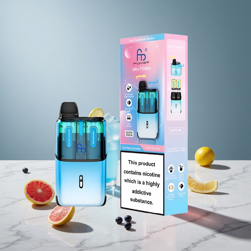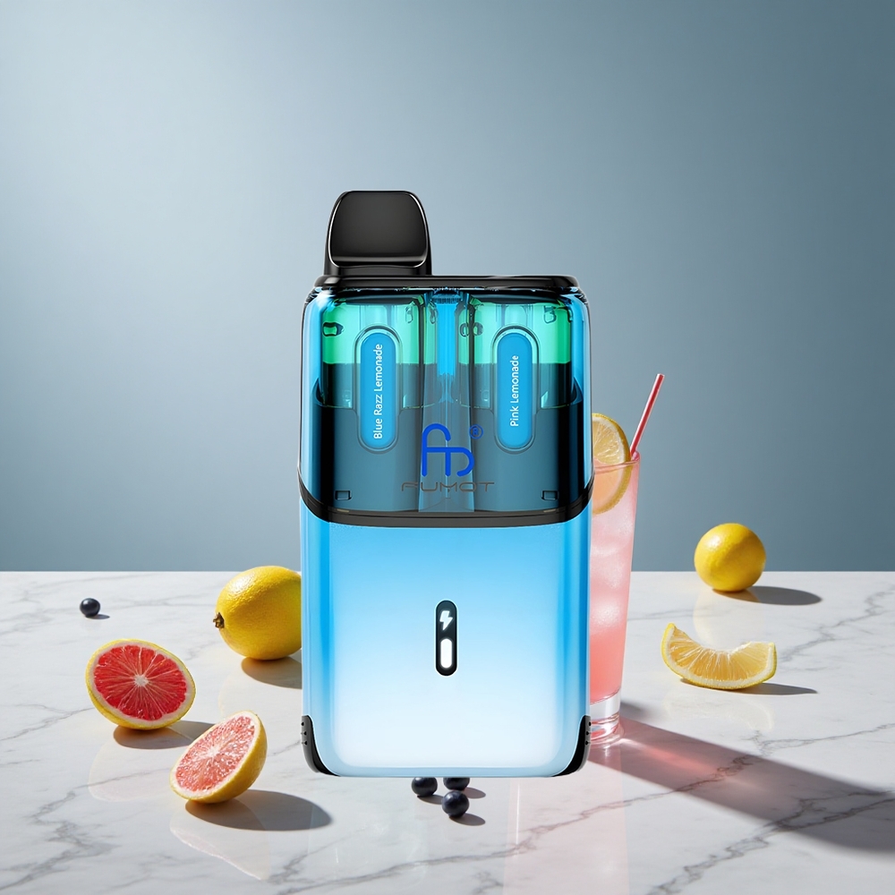 Fumot Ultra T32000 Engangs Vape med 32000 Puffs og 24ml E-Væske – Blå Hindbær Limonade & Lyserød Limonade